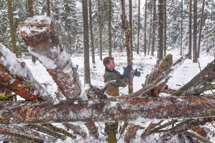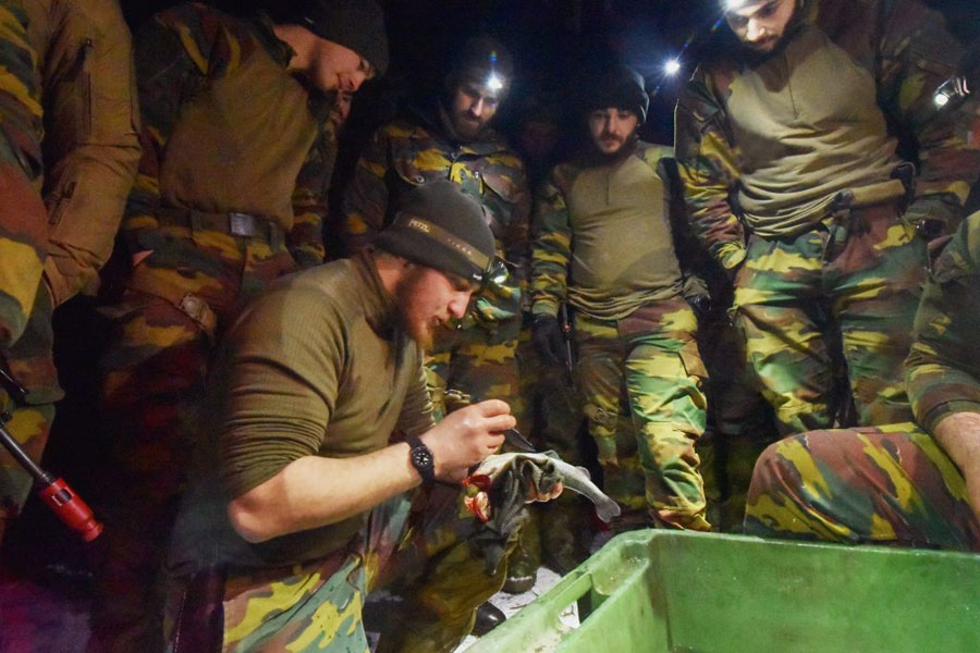 Ezután az ételt az előzőleg meggyújtott tűz fölött sütötték meg. A hideg, havas és jóval fagypont alatti hőmérsékletű erdőben mindenki nagyon jól aludt, sikeresen zárult a képzés.