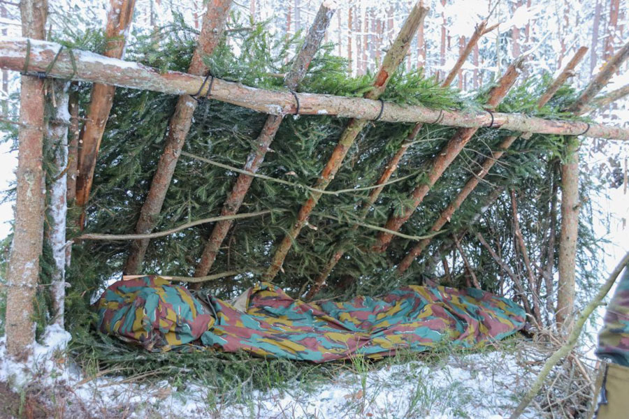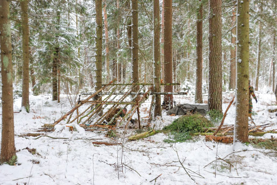 A szokásos SERE képzéshez képest Litvániában a túlélési kiképzés nem volt megerőltető. Ez a többnapos bevezetés a menedékek építésével kezdődött, a nagyon primitívtől a teljesen kiépítettig terjedt, kizárólag a természetben található anyagokat használták, például a kidőlt fák az építkezéshez és fenyőágak az építmény lefedéséhez.