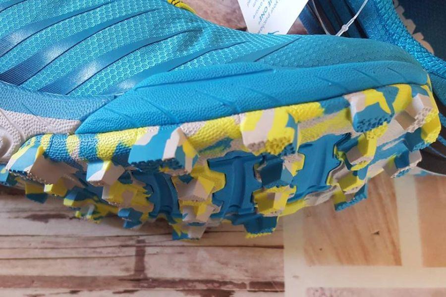A cipő külső talpa kemény és kopásálló (ez nem véletlen, hiszen VIBRAM), a kövek, terepakadályok nem igazán "szúrnak" át rajta. Mintája és kialakítása kifejezetten kedveli a puha, süppedős talajt, ilyen körülmények között maximális a teljesítménye. 4 percen belüli tempóban akár még betonon is simán futhatunk benne - bár a magas minták miatt kicsit imbolygós az érzés -, sem a talp, sem a láb nem sínyli meg ezt a "nem rendeltetésszerű használatot". Mert akárhogyan is nézzük, az Ewo Jawz terepcipő puha talajra, sárra, homokra - felesleges betonra vagy sziklás talajra hordani.