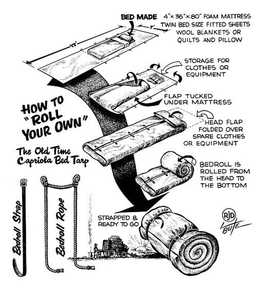 A harmadik lehetőség a hálózsákok és párnák egyfajta őse, az úgynevezett „bedroll” vagy „cowboy bedroll”. Ez egy olajos kendőbe tekert takaróból áll, amelyet ma néhány vadász és bushcrafter használ. Nem túl praktikus, mert sajnos nagy, nehézkes, nem túl meleg, de ugyanakkor fantasztikus hangulatú derékalj. Hideg téli használatra azonban nem ajánlott, hacsak nem tudsz egész éjjel tüzet égetni.