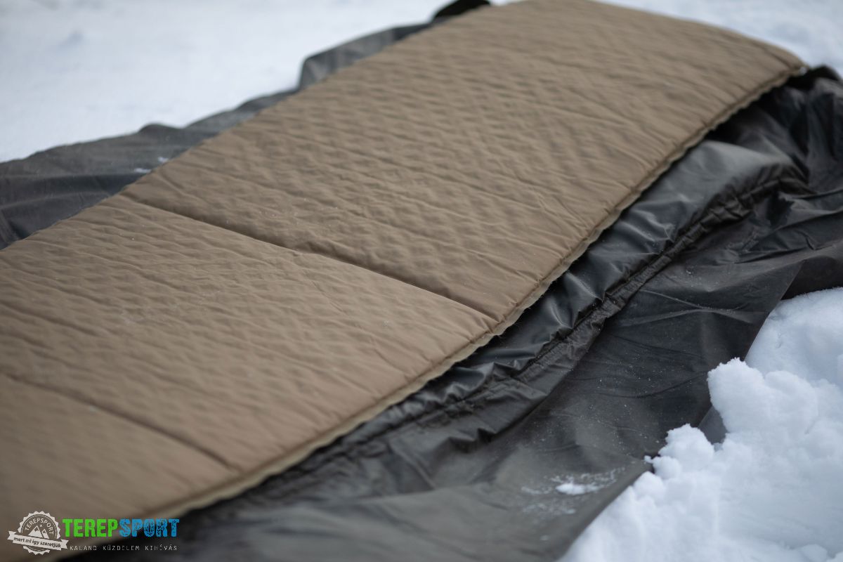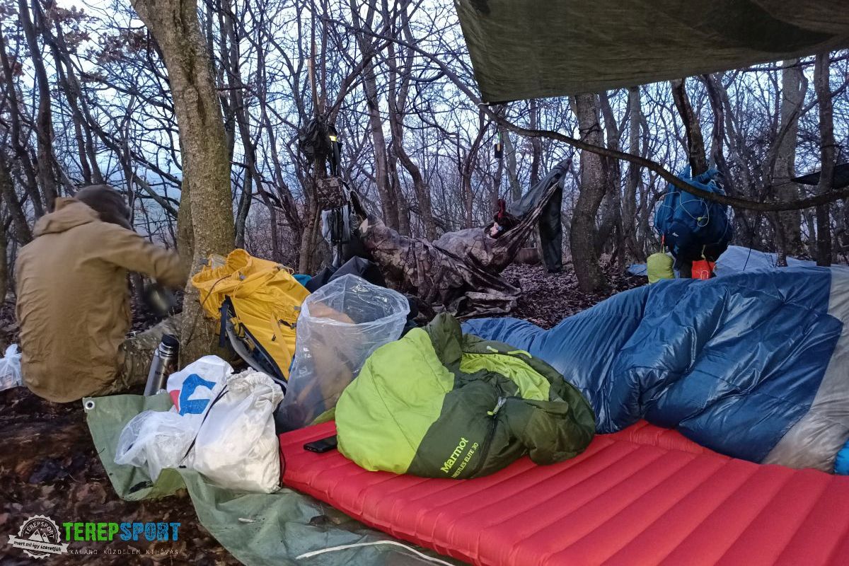Én egész évben jól elboldogulok ugyanazzal a felszereléssel (vízzárófólia plusz R=3 értékű felfújható derékalj), kivéve a hideg téli éjszakákat, amikor a hőmérséklet -10 Celsius-fok alatt van, akkor viszek egy R>2 értékű harmonika matracot alá.