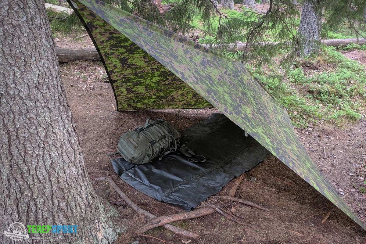 Én mindig viszek magammal alátétnek egy építkezési vízzáró fóliát, ami sokkal nagyobb alapterületű, mint a fekvőhelyem, így a fejem fölé kifeszített ponyva vagy más fedezék alatt nagyon kényelmesen és szárazon vagyok akár esőben, hóban is. Ez véd az éles tárgyak, a nedvesség ellen és a rovarok sem szeretik.