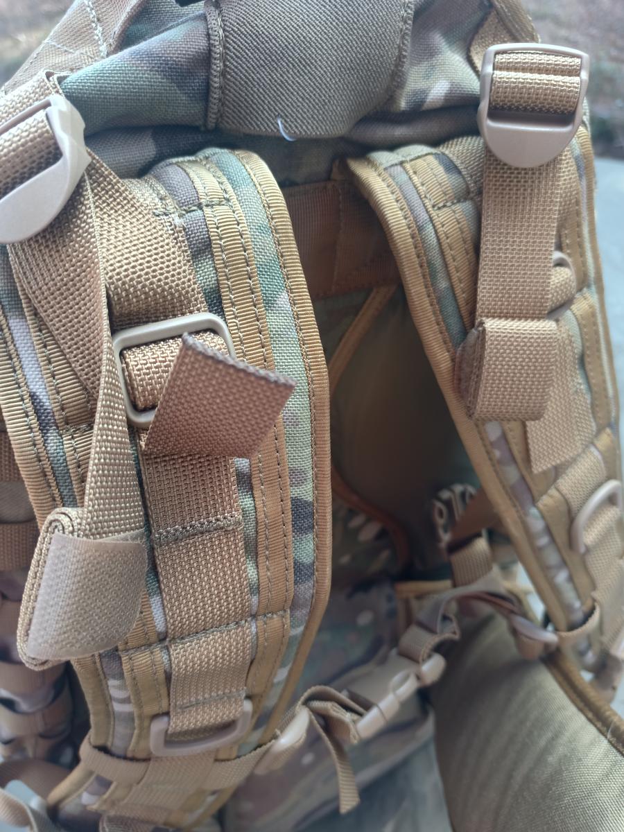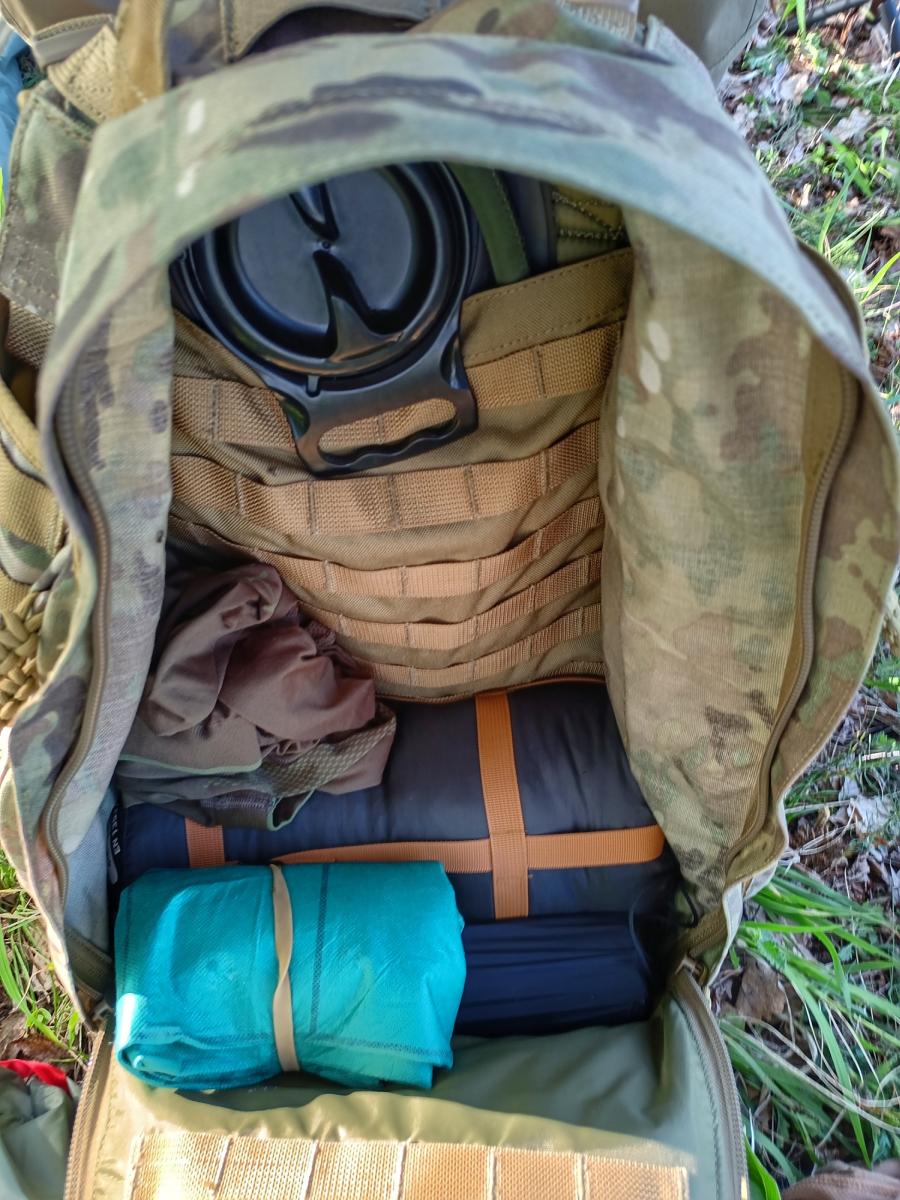 A fő rekesz belsejében egy teljes MOLLE hevederpanel is található, így belül is lehetőségünk van rendszerező tárolókat felszerelni. A zsák hátlapja megerősített és kényelmes (de nem puha) párnázattal rendelkezik még hatékonyabban lehessen a terheket cipelni. A vállpántok szélesek, megerősítettek, igazán hosszú távú viseléshez kényelmesek. A hátrész-vállpántok magassága nem állítható, de a zsák alapvető funkciója ezt nem is teszi szükségessé. Egyéb használatra pedig a méret alapján elég széles körben lehet kényelmes (kb. 160-190 cm között).