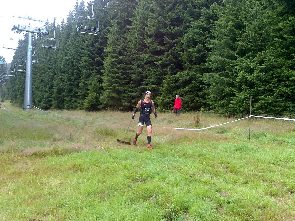 A rajt után próbáltam elöl maradni, de megfogadtam, hogy csak saját tempót fogok futni és nem hagyom, hogy elvegyen a mezőny eleje. 3 sípályán kellett felfutni és ennél az elsőnél a 2. helyen értem fel, majd lefutottunk ennek a pályának az aljába egy másik úton ahol a 3. helyen kezdtem az első komolyabb akadályt (traverz) egy falmászós akadályt. Az élen futó (Ziska) hibázott és így ismét a második helyre kerültem, majd egy rövid ideig az élen is futottam, de végig az járt a fejemben, hogy csak saját tempóban és okosan kell versenyezni, mert hosszú lesz ez még. A komolyabb lejtőkön utolértek, majd leelőztek, az első órában ketten és a második órában is ketten. Az emelkedőkön erősebbnek éreztem magam az előttem haladóknál, többször láttam, hogy ők belesétálnak, én pedig futva közeledtem feléjük, ami jó érzés volt.