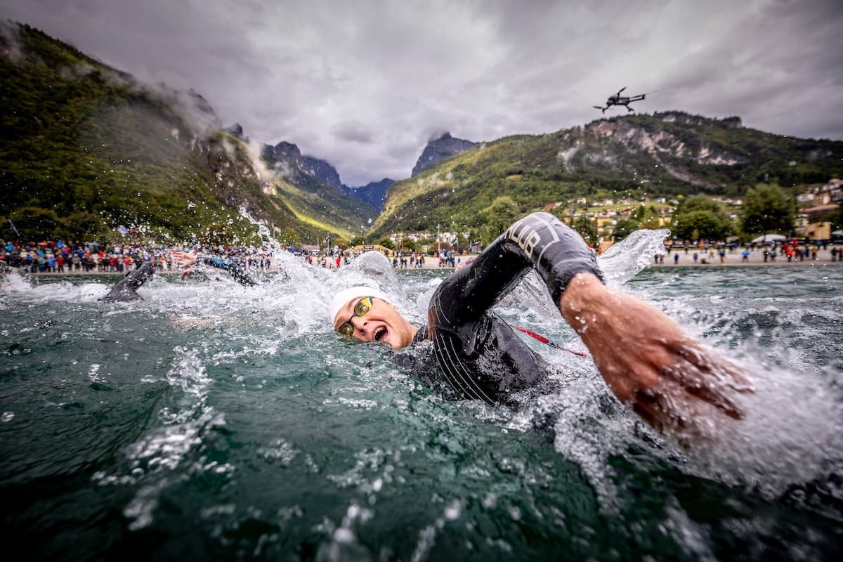 A mezőny a Molveno tónál (Lago di Molveno) rajtol: ez egy szikrázó hegyi tó, kristálytiszta vizével, kihívást jelentő áramlatokkal és hőfokkal. A versenyzők számára a vízben is alkalmazkodni kell a hullámzáshoz és a kilépéshez, ami már az első pillanatokban feladja a leckét.